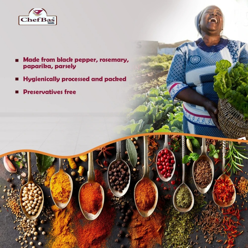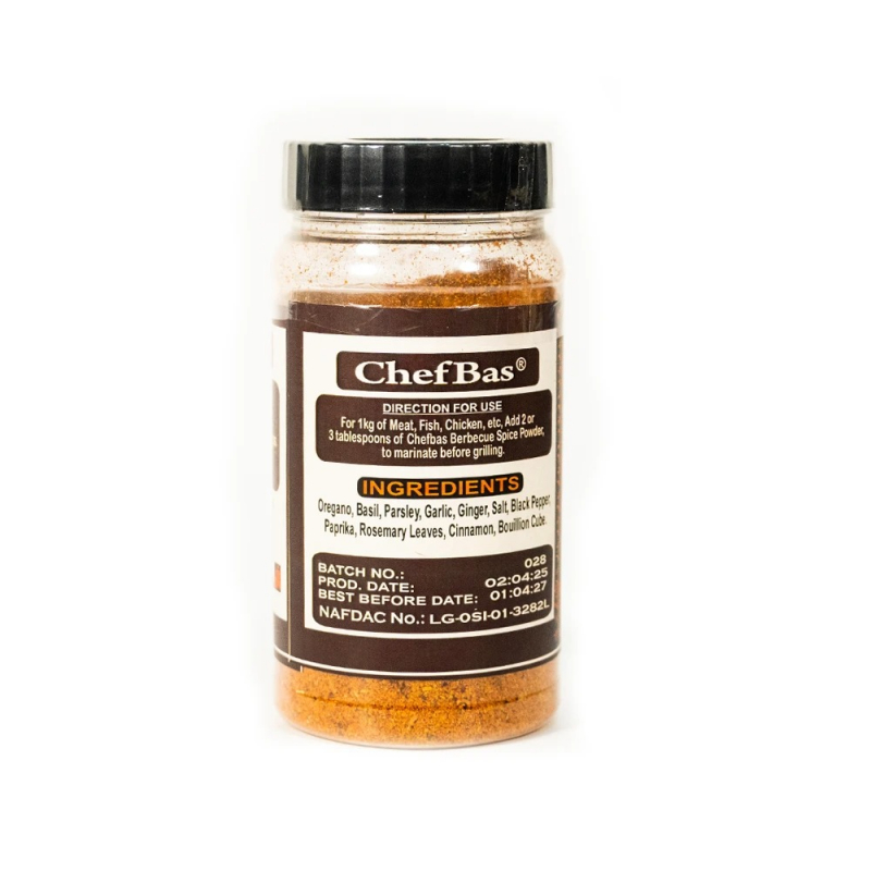 Chefbas Barbecue Spice is produced without any form of additives. It is certified fillers free In compliance with NAFDAC regulations, ensuring it is safe and suitable for consumptions. Packed in small batches of the same high quality.