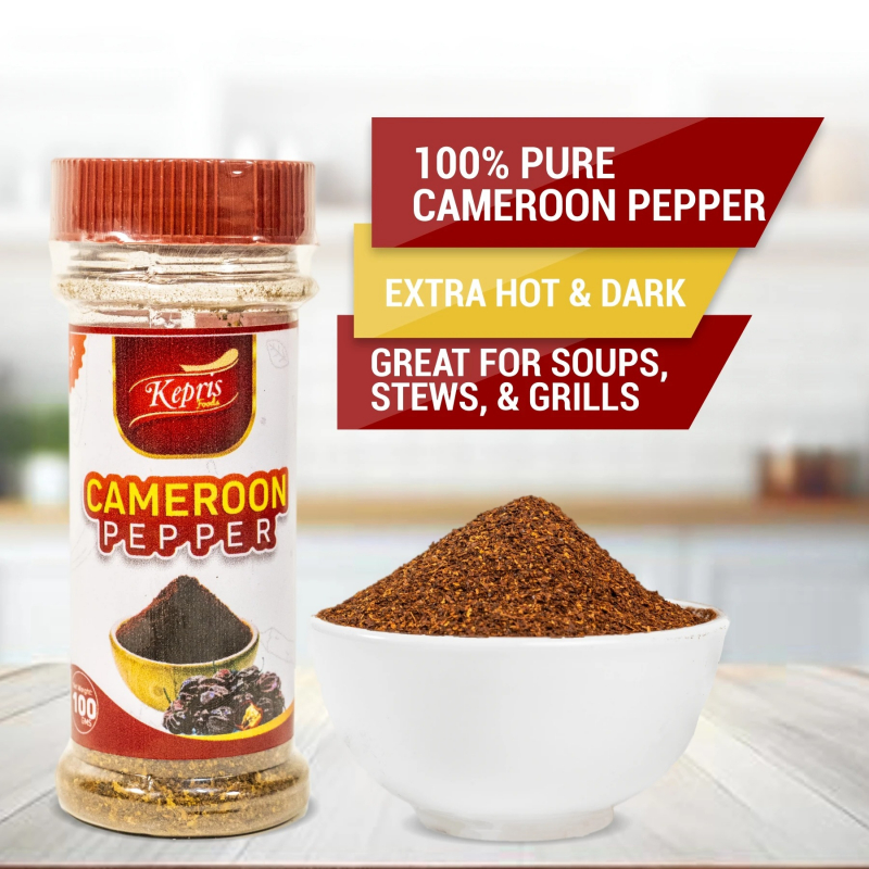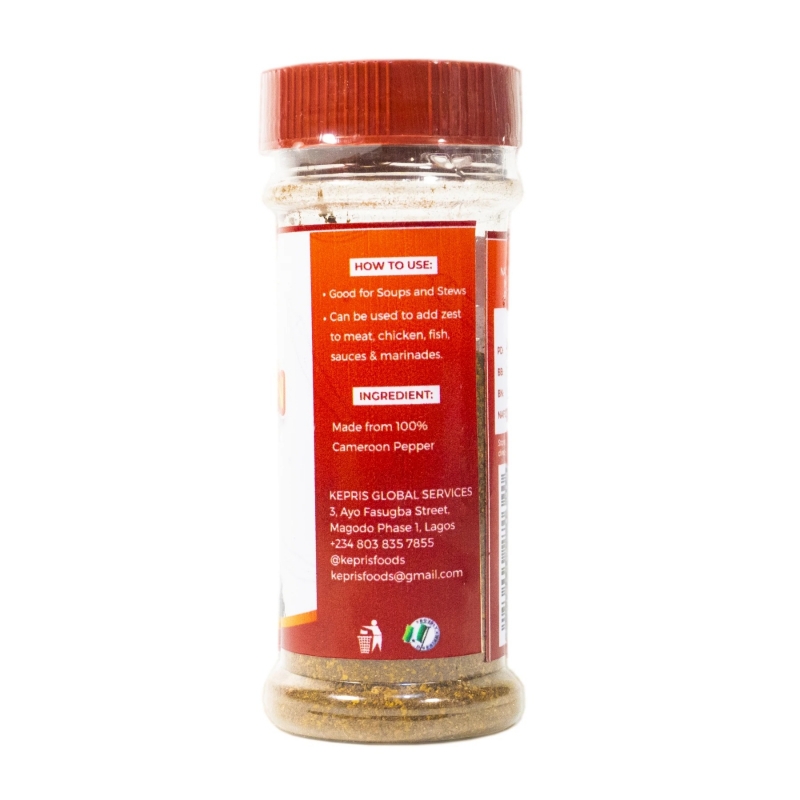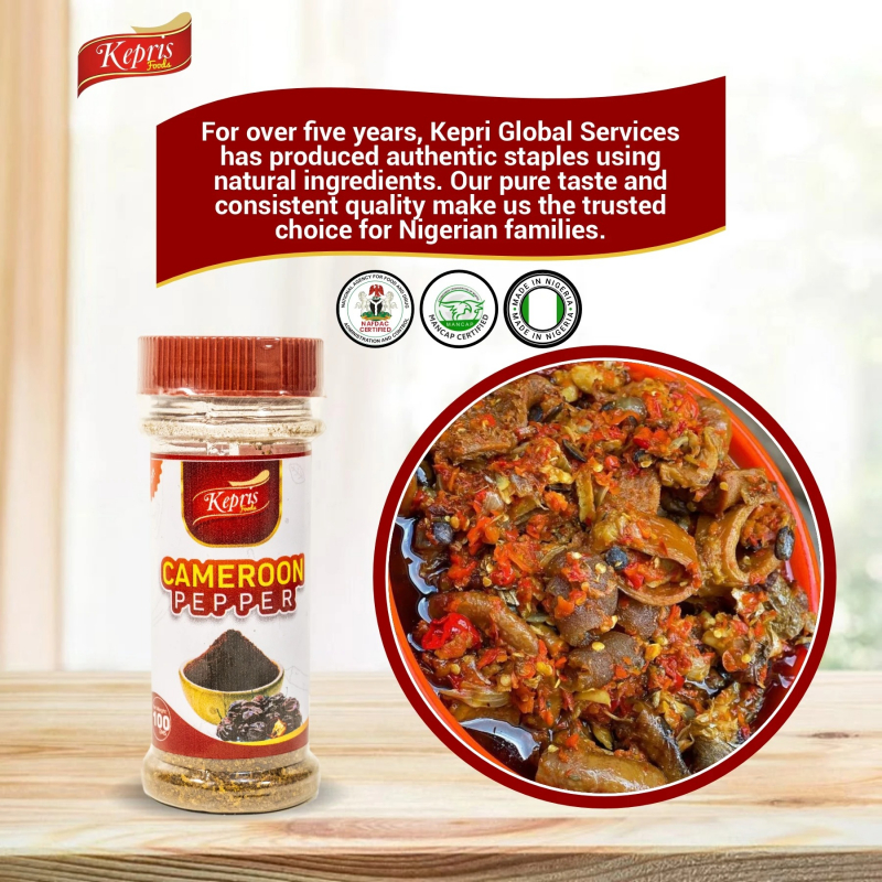 100% Pure Ground Cameroon Pepper Made in Nigeria: Made from sun-dried Scotch Bonnet peppers native to Nigeria. Kepris Cameroon Pepper gives that Naija bold, smoky heat that transforms every meal.