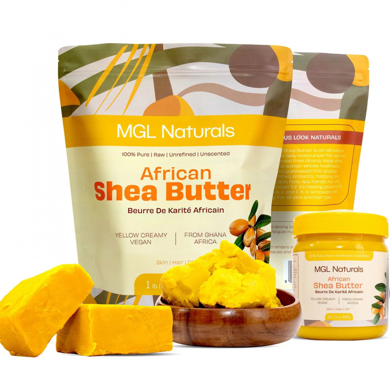 MGL Naturals African Shea Butter Yellow is an all-natural handcrafted intensive daily moisturizer for the skin and hair. Sustainably sourced in Ghana, West Africa, from determined rural women whose livelihood is improved because you purchased this product fairly. It deeply nourishes, moisturizes, restores, and enhances the hair, skin, face, lips, hands, feet, and for massage. Known for its properties, it contains vitamins A, E and F. For all skin types and all hair textures.